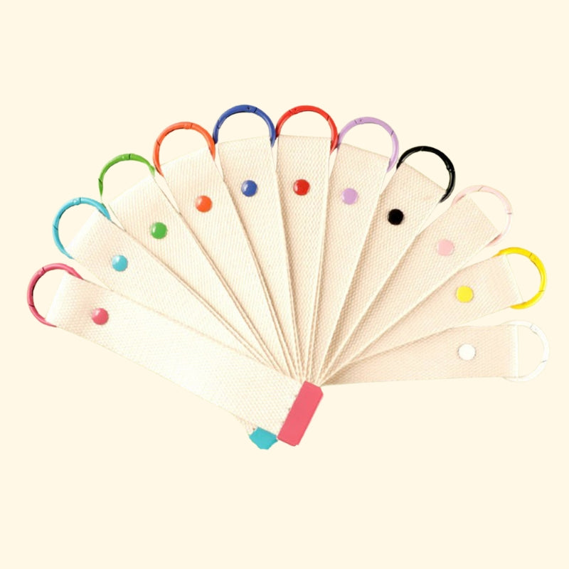 DIY embroidered canvas strap with iron-on personalization. Lightweight ribbon-style design ideal for keys, bottles, or bags. Minimal INS aesthetic — stylish, functional, and perfect for daily use or gifting.