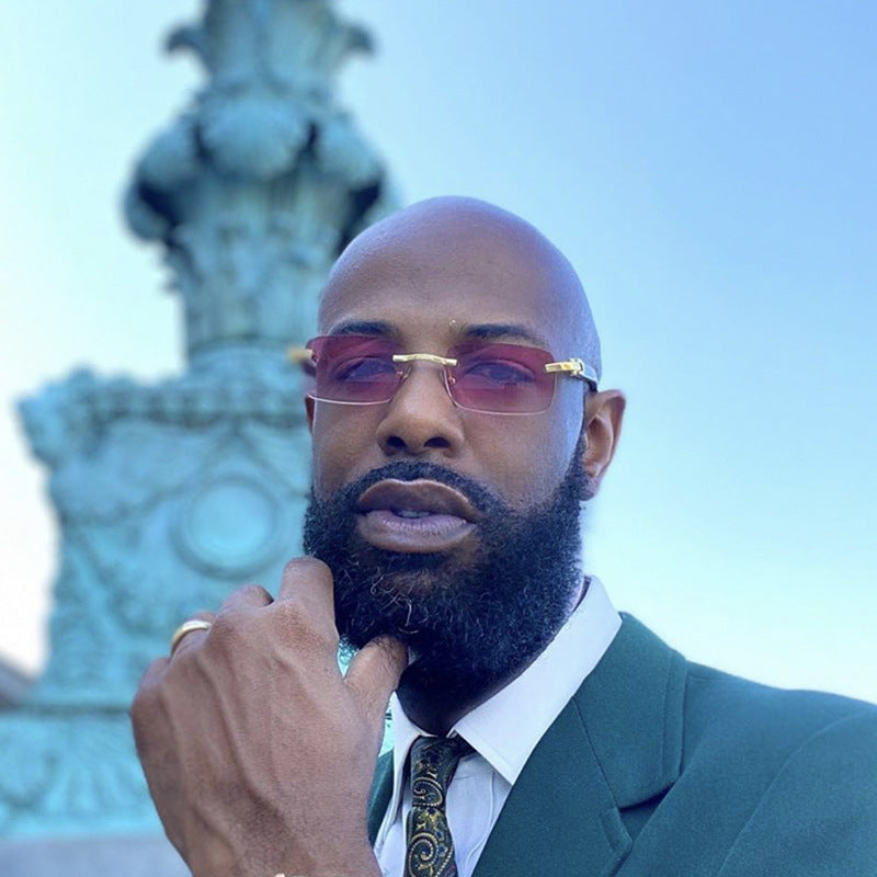 Step up your style with these men’s rimless square sunglasses, designed with a bold diamond-cut edge lens and high-definition ocean tint for a modern luxury look. The unique wood grain temple arms add a touch of sophistication, while the UV protection lenses keep your eyes safe in style. Perfect for streetwear, driving, travel, and outdoor activities, these shades combine European fashion trends with everyday practicality. A must-have accessory for those who love individuality and elegance.