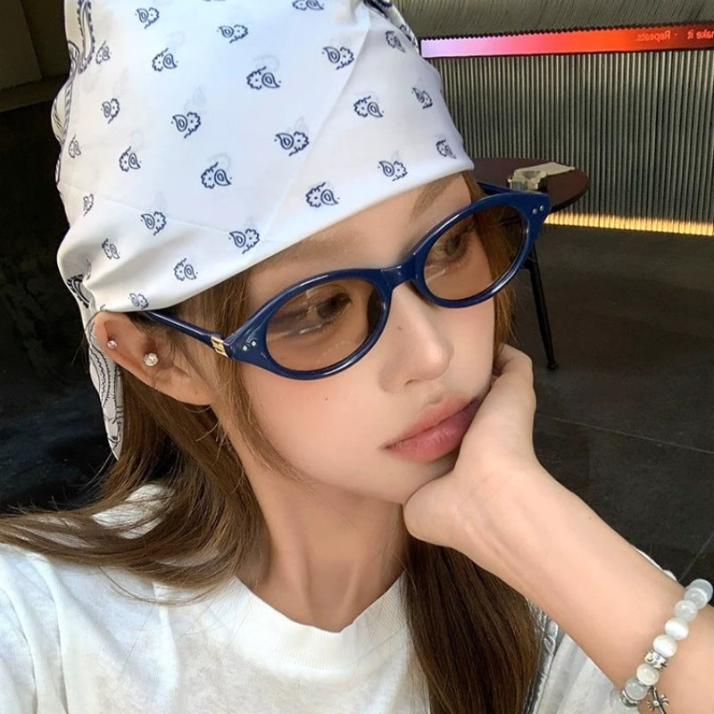 Trendy Oval Small Frame Nerd Sunglasses for Women | Retro Street Style Fashion Shades | UV400 Protection All-Match Sunglasses